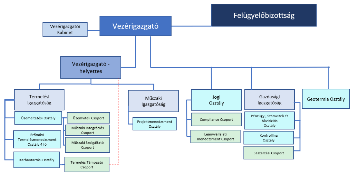 Feladata: A Geotermia Osztály a társaság geotermikus erőműveinek fejlesztéséért, megvalósításáért és szakmai felügyeletéért felel, biztosítva a projektek teljes körű műszaki, engedélyezési, költség- és projektmenedzsment támogatását.